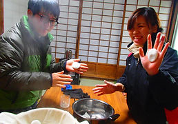 古民家では、昨日のうちにとっておいたヨモギを使ってお団子作りにもチャレンジしました。